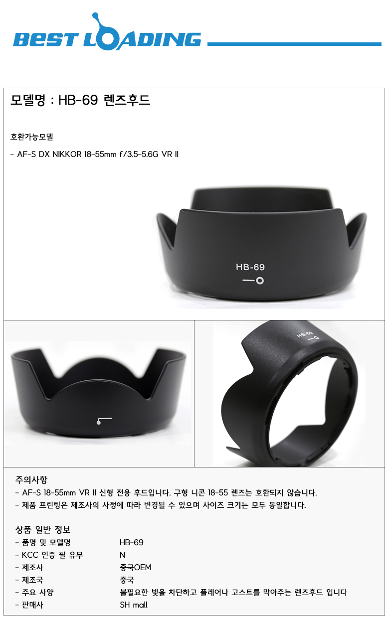 니콘호환후드 HB-69/AF-S DX 18-55mm F3.5-5.6G VR II